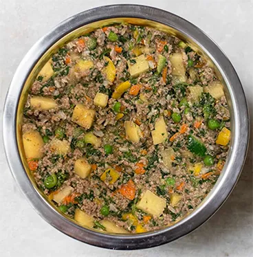 Beef – Contains: Lean Ground Beef, Carrot, Pea, Zucchini, Squash, Spinach, Pumpkin, Parsley, Long Grain Brown Rice, Blueberry, Safflower, and Coconut Oil